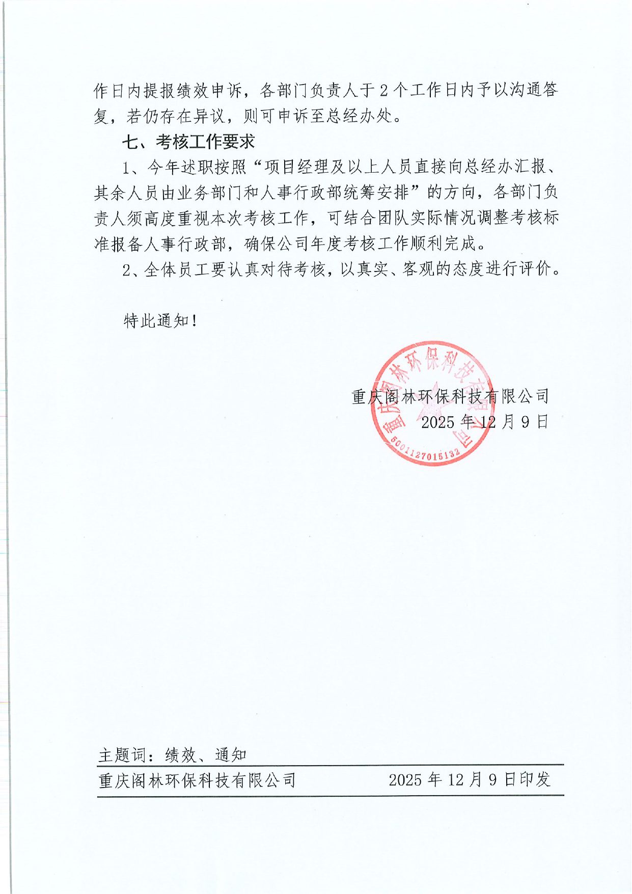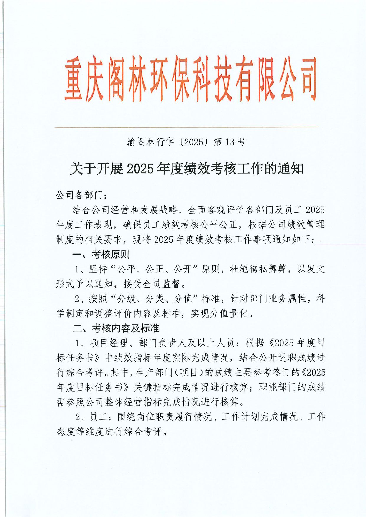通知公告 渝閣林行字〔2025〕第13號 關于開展2025年度績效考核工作的通知 來源/作者:人事行政部 ?? 發布時間:2025-12-09 ?? 瀏覽次數: 上一篇:渝閣林工字〔2025〕第4號 關于發布《EPC工程事業部崗位職責說明書》的通知 渝閣林財字〔2025〕第1號 關于2025年年終關賬工作有關事項的通知:下一篇 更多新聞 渝閣林工字〔2025〕第5號 關于考取渝建安C證的通知 渝閣林工字〔2025〕第4號 關于發布《EPC工程事業部崗位職責說明書》的通知 渝閣林財字〔2025〕第1號 關于2025年年終關賬工作有關事項的通知 閣林環保支委發〔2025〕7號 關于組織開展“清水潤心·關愛同行”公益活動的通知