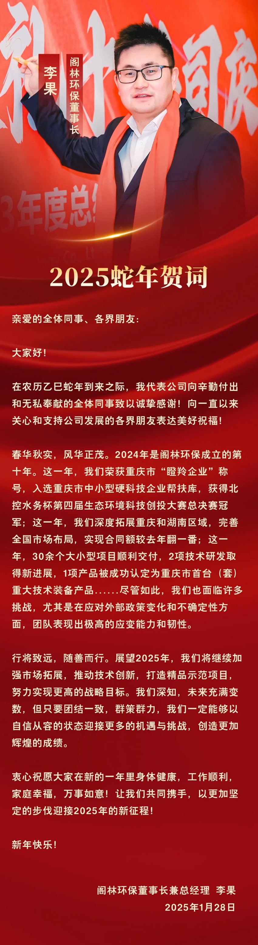公司要聞媒體報道行業(yè)動態(tài) 2025蛇年賀詞 | 行將致遠 隨善而行 來源/作者:閣林環(huán)保 ?? 發(fā)布時間:2025-01-28 ?? 瀏覽次數(shù): 上一篇:內(nèi)推有獎 | 2025年社會招聘 更多新聞 2026新年賀詞 清水潤心·關(guān)愛同行 | 我司前往重慶高新區(qū)金鳳鎮(zhèn)文昌村開展關(guān)愛留守兒童活動 清水潤心·關(guān)愛同行 | 我司前往桐梓縣高橋鎮(zhèn)青杠村開展關(guān)懷留守兒童公益活動 新聞快訊?|?芯視界(北京)科技有限公司到訪閣林環(huán)保,攜手重慶大學(xué)環(huán)境與生態(tài)學(xué)院,三方共筑"感知-治理"一體化環(huán)保新生態(tài)